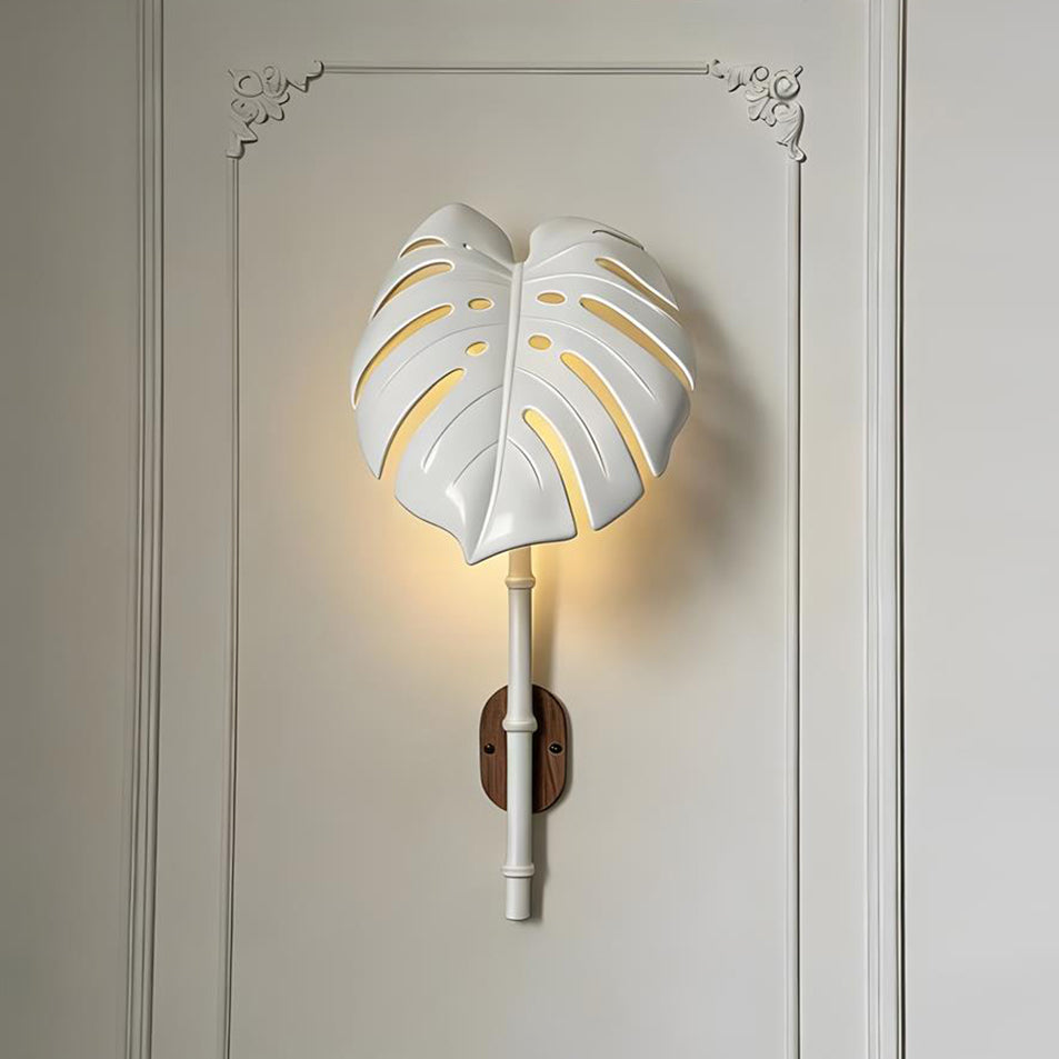 Folium Wall Lamp draws inspiration from the graceful form of a tropical leaf, transforming a familiar botanical silhouette into a sculptural wall light. The softly curved shade is carefully contoured to echo natural veins, allowing warm light to filter through subtle cutouts and create a gentle play of light and shadow on the wall. Paired with a slender stem and understated mounting base, Folium feels both organic and refined—like a leaf caught in a quiet moment indoors.