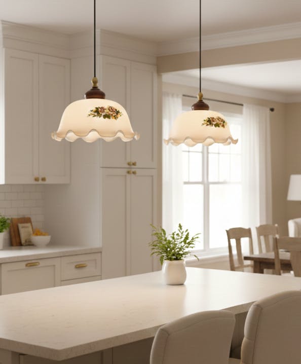 Add a touch of nature’s beauty to your interiors with the Nonna Floral Pendant Lamp. This fixture combines the classic elegance of a curved, frosted glass lampshade adorned with delicate floral motifs, with the rustic charm of its finely crafted metal fittings. Perfect for creating a soft, inviting atmosphere, this pendant lamp is an exquisite choice for anyone looking to enhance their space with a blend of traditional craftsmanship and natural allure.
