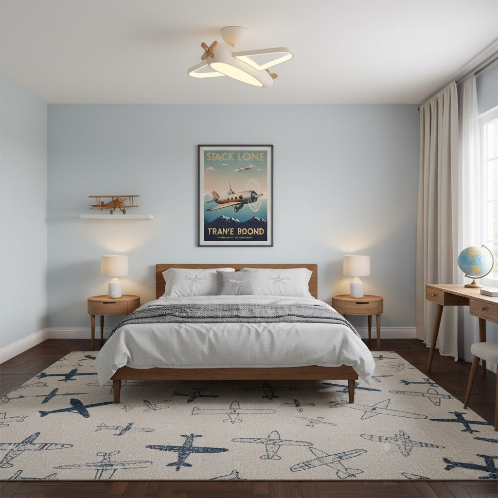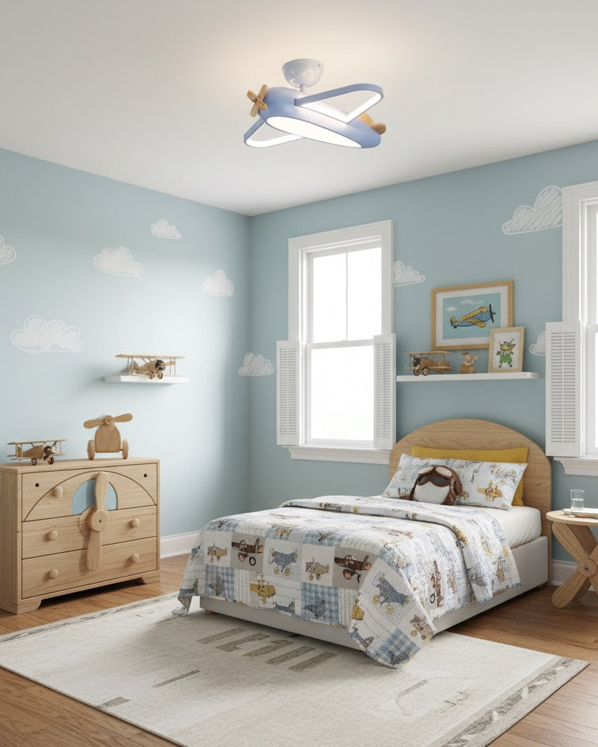 The Airplane Ceiling Lamp is the perfect blend of fun and functionality, designed to add a whimsical touch to any child's room or play area. With its playful airplane shape and wooden propeller detail, this lamp offers both unique style and soft, diffused lighting. Available in soft blue and cream colors, it complements a variety of room decors. Its modern design makes it an ideal choice for nurseries, bedrooms, or any space that needs a bit of imaginative charm.