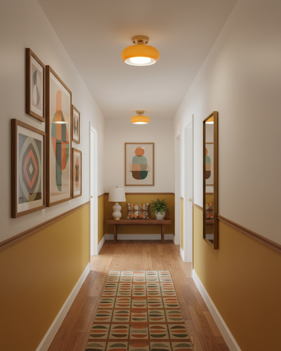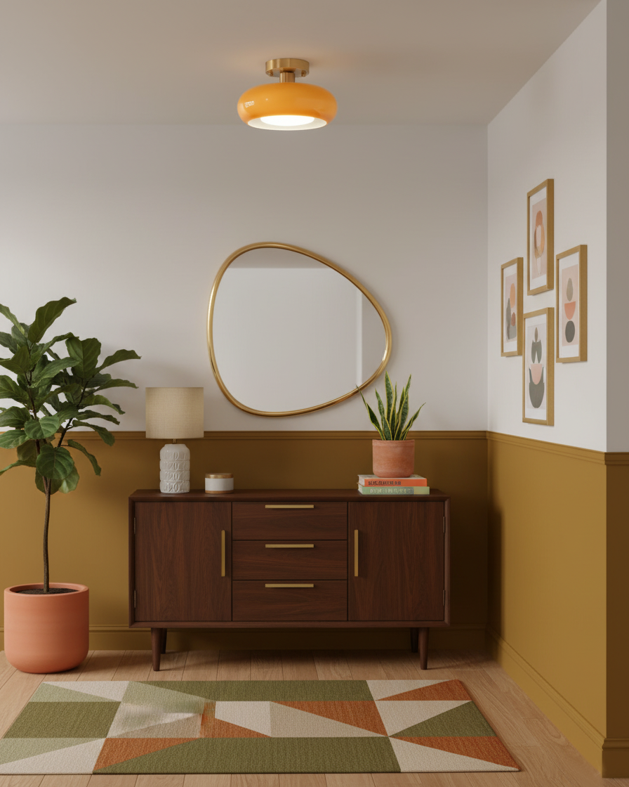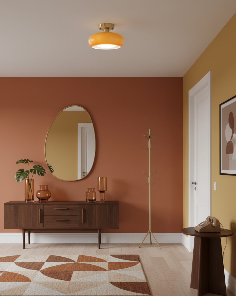 This Sanna Glass Ceiling Light with its retro style design, embodies an ambiance filled with artistic flair, becoming a highlight in interior design. Its smooth lampshade, in an elegant hue, paired with a fine metallic fixture, exudes a sense of classic yet modern aesthetics. This fixture is not only visually pleasing but also seamlessly blends into a variety of indoor settings.