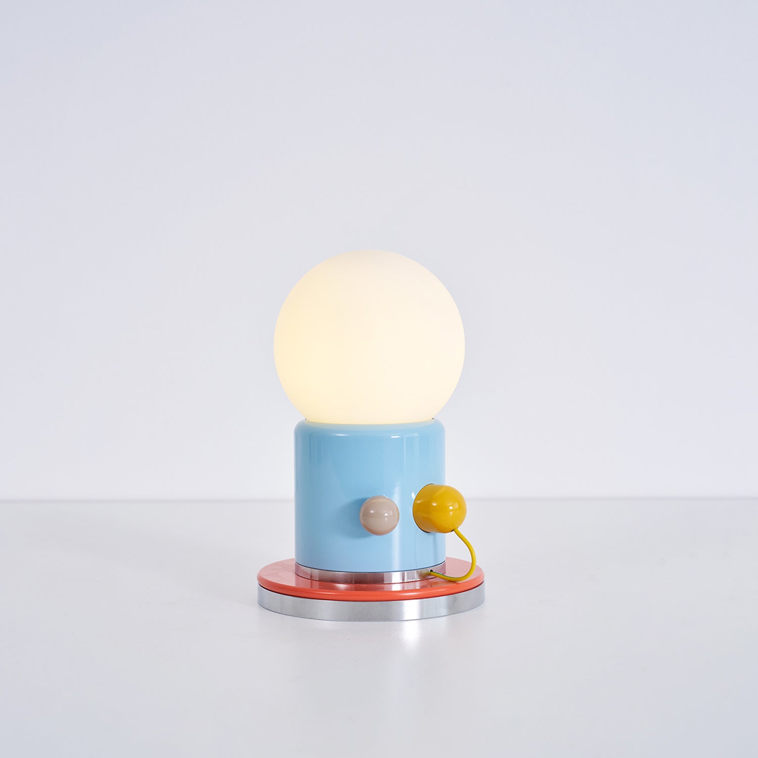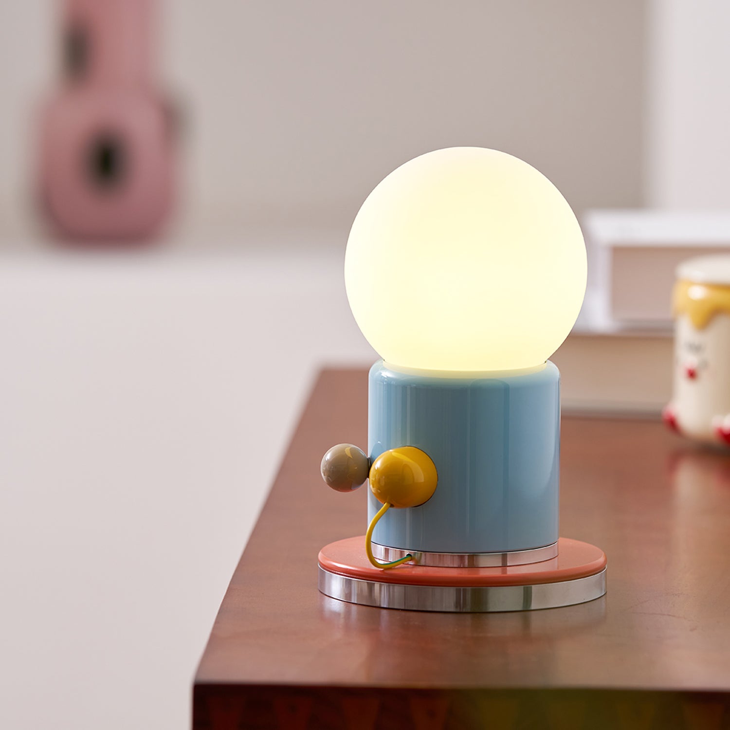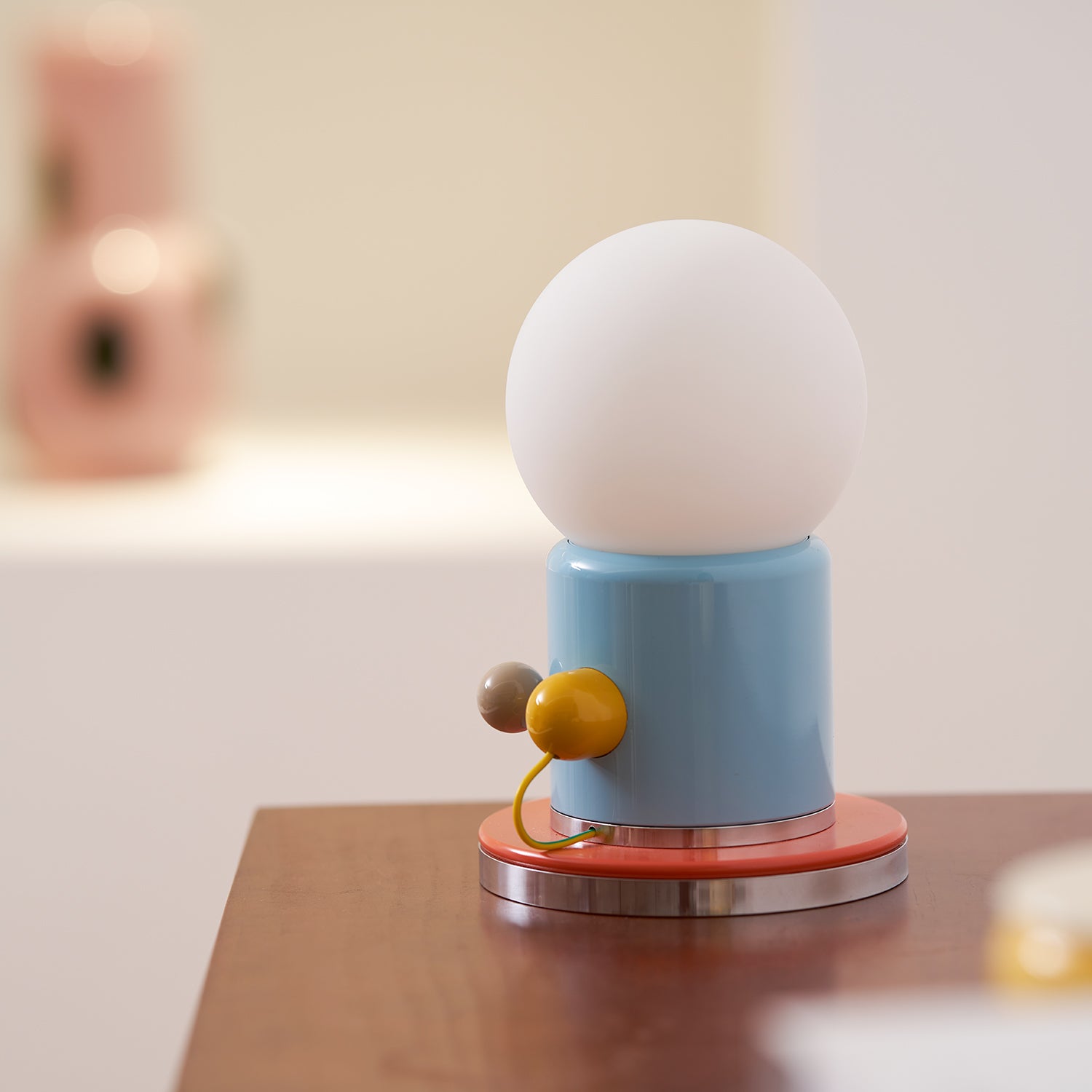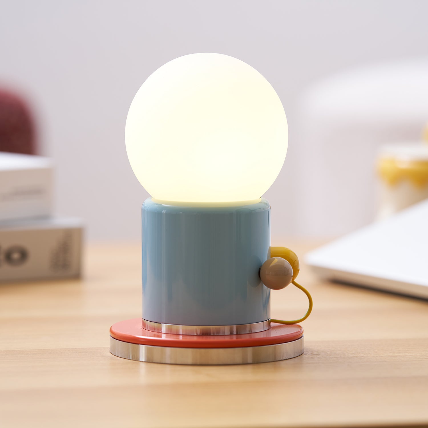 This playful and modern table lamp features a minimalist geometric design, with a round lampshade paired with a brightly colored cylindrical base, creating a unique visual depth. The vibrant colors and playful decorative spheres add a sense of energy and creativity to the lamp. The touch switch is responsive and convenient, lighting up with a single tap, adding a touch of tech-savvy charm. Its rechargeable function frees it from the limitations of cords, providing soft lighting anytime, anywhere.