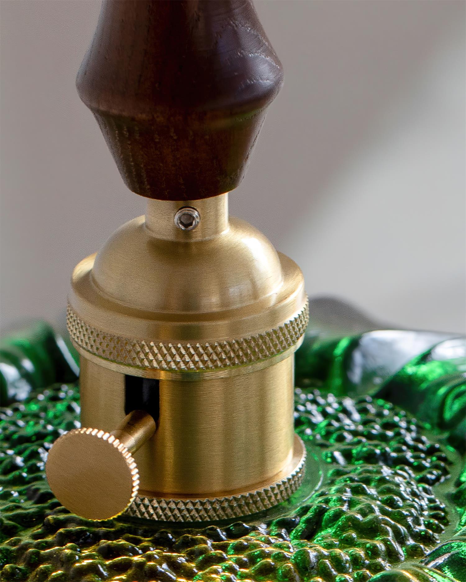 The Lucira Pendant Lamp captures the poetry of light through its rippling, hand-blown glass shade that resembles a gently unfolding flower. Each piece glows with organic warmth, enhanced by a brass and walnut accent that adds depth and balance. Available in soft translucent hues—from blush to amber and moss green—it diffuses light with a delicate radiance that transforms any space into an intimate retreat. A perfect harmony of craftsmanship and natural grace, Lucira brings timeless elegance to modern interiors.