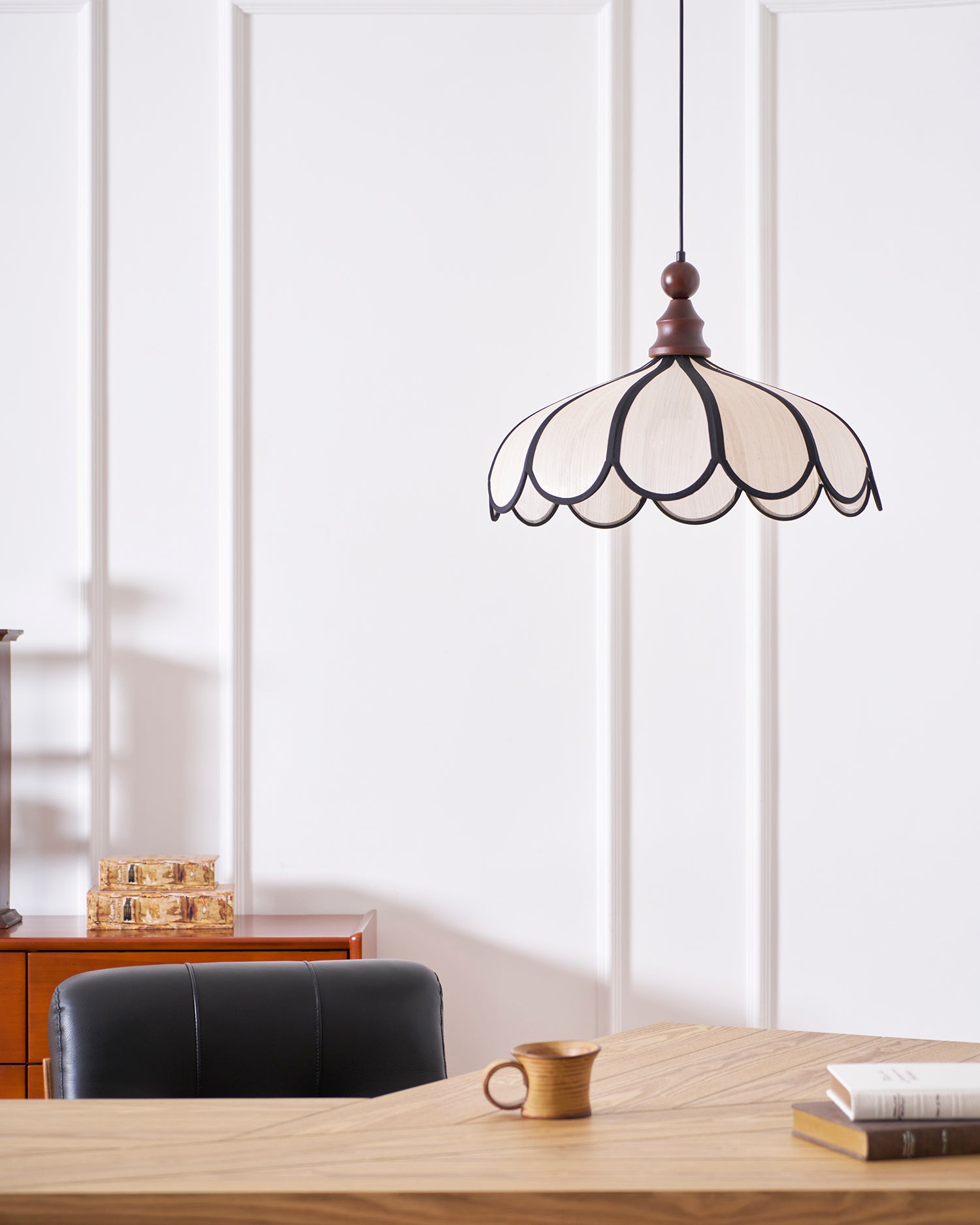The Bellerin Pendant Lamp captures the gentle charm of vintage elegance through its scalloped Abaca shade and warm wooden accents. Its soft, curved silhouette diffuses light with a delicate glow, evoking the quiet grace of a bygone era. Suspended like a floating bloom, Bellerin brings a touch of nostalgic romance to modern interiors—refined, poetic, and effortlessly timeless.
