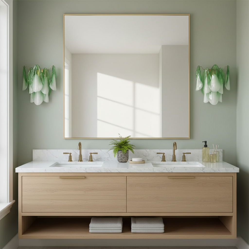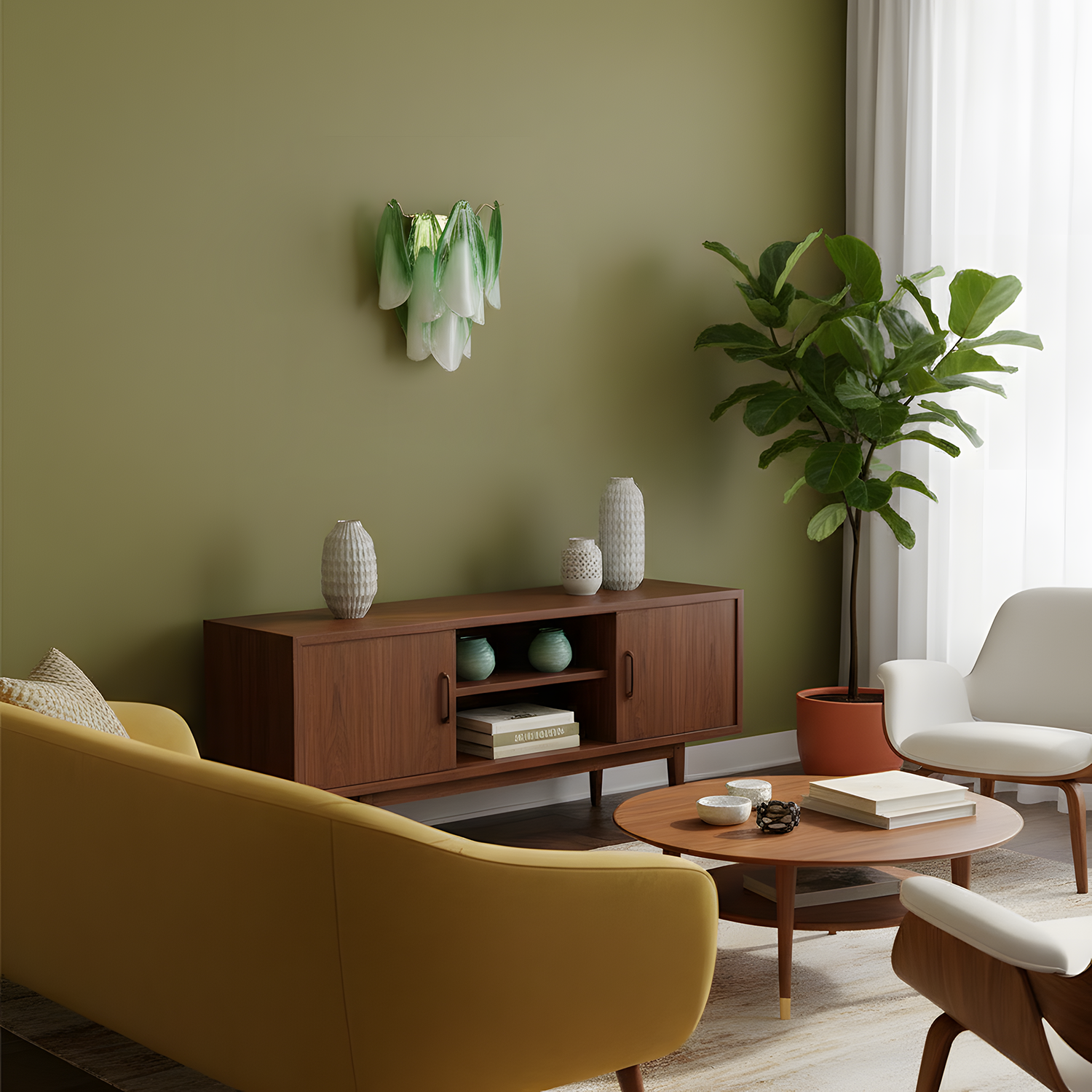 The Fuchsia Wall Lamp evokes a poetic sense of natural elegance through its cascading glass petals in soft pink or green hues. Each hand-blown element is delicately layered to mimic the blooming rhythm of a flower, bringing a gentle vibrancy and tactile luminosity to your space. Anchored by a refined brass frame, this sculptural piece combines artistry with ambient functionality.