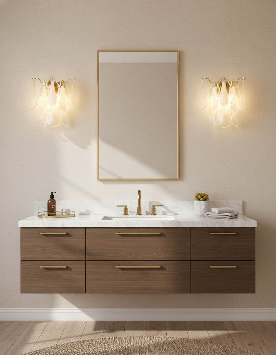 These lamp are gorgeous and have such a unique look. They really stand out in our bathroom.