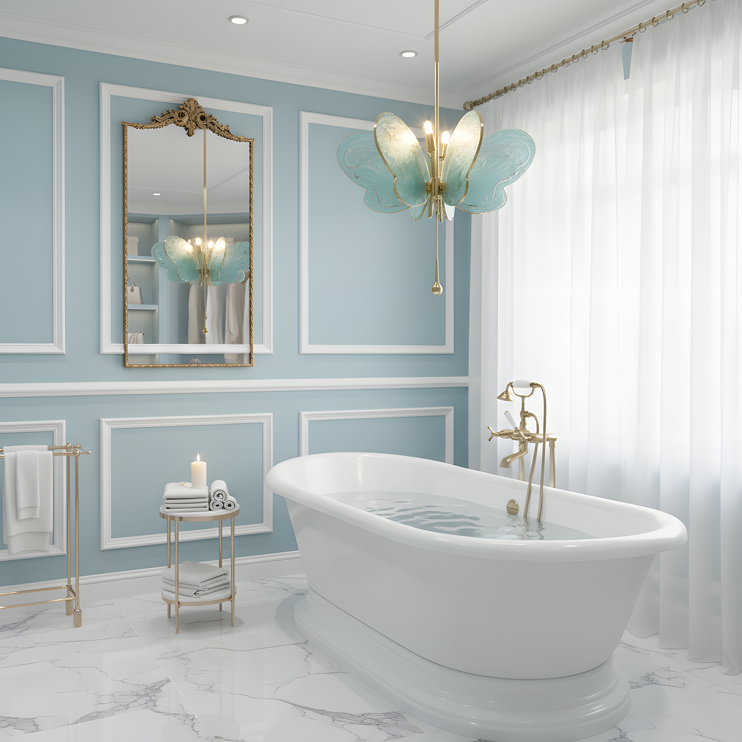 This exquisite butterfly pendant lamp captures the attention of everyone who enters the room with its unique design and warm glow. The golden support complements the light and transparent glass wings, which grace the space with the elegance of a butterfly in flight. The golden drop at the center of the fixture not only adds a dynamic touch but also symbolizes the butterfly's moment of nectar gathering among the flowers.