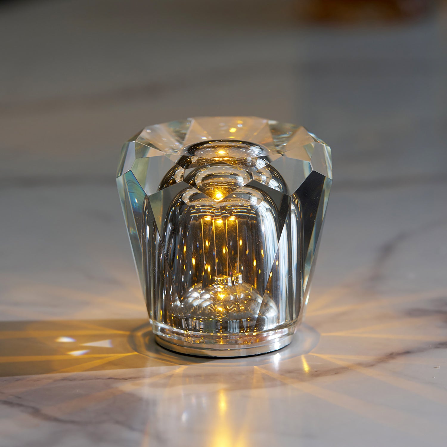The Crystal Diamond Table Lamp features master artisanship, hand-cutting and polishing each surface of the crystal glass shade to deliver superior radiance and glimmer. Its unique reflective quality creates a stunning tapestry of light and offers an ethereal aesthetic.