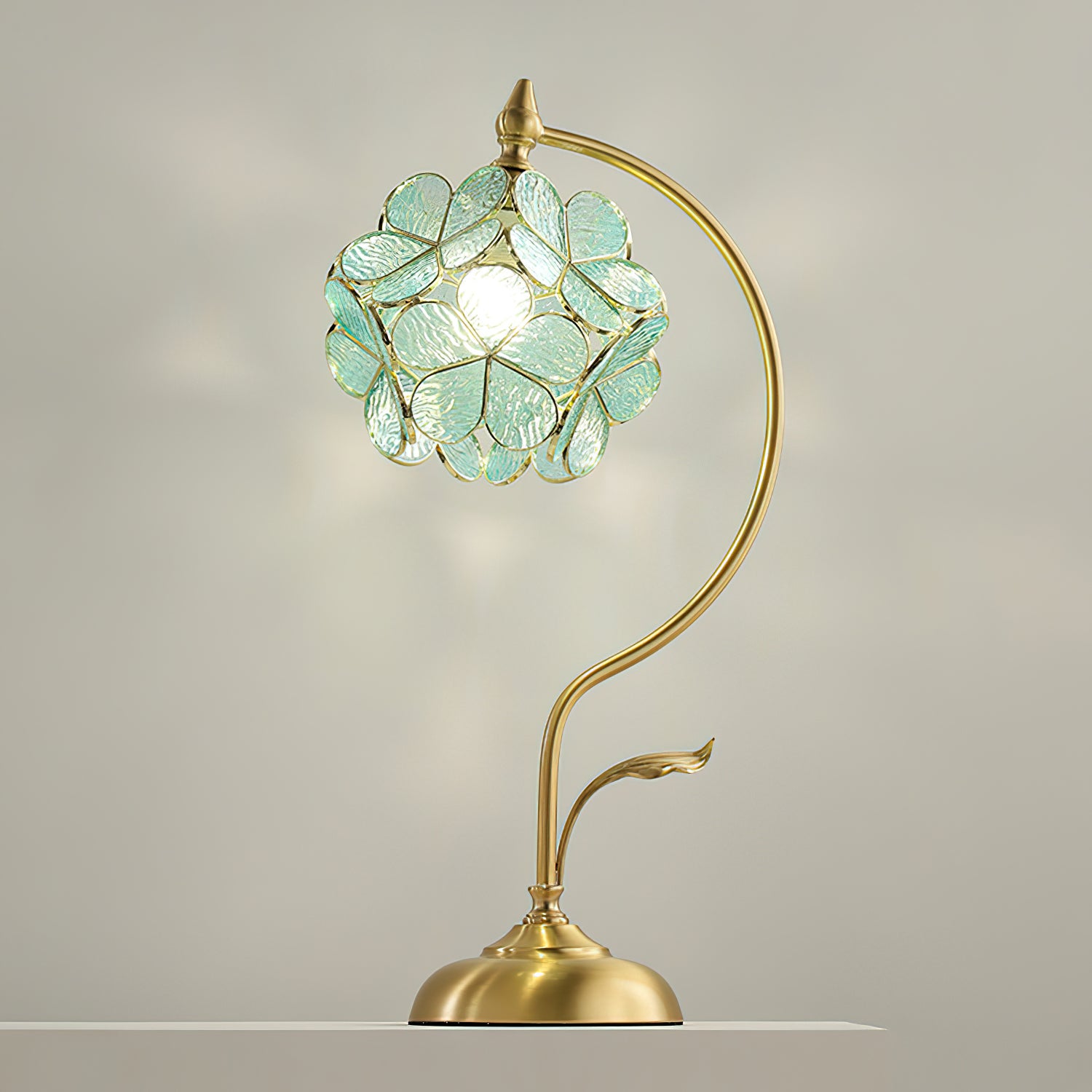 The Petalora Table Lamp captures the delicate grace of blooming petals through its sculptural stained-glass shade and gently curved brass stem. Each petal, outlined in fine Brass, diffuses a soft, radiant glow that transforms light into art. Poetic and romantic, Petalora evokes the beauty of nature in motion—an elegant statement piece that brings warmth, color, and timeless craftsmanship to any interior.