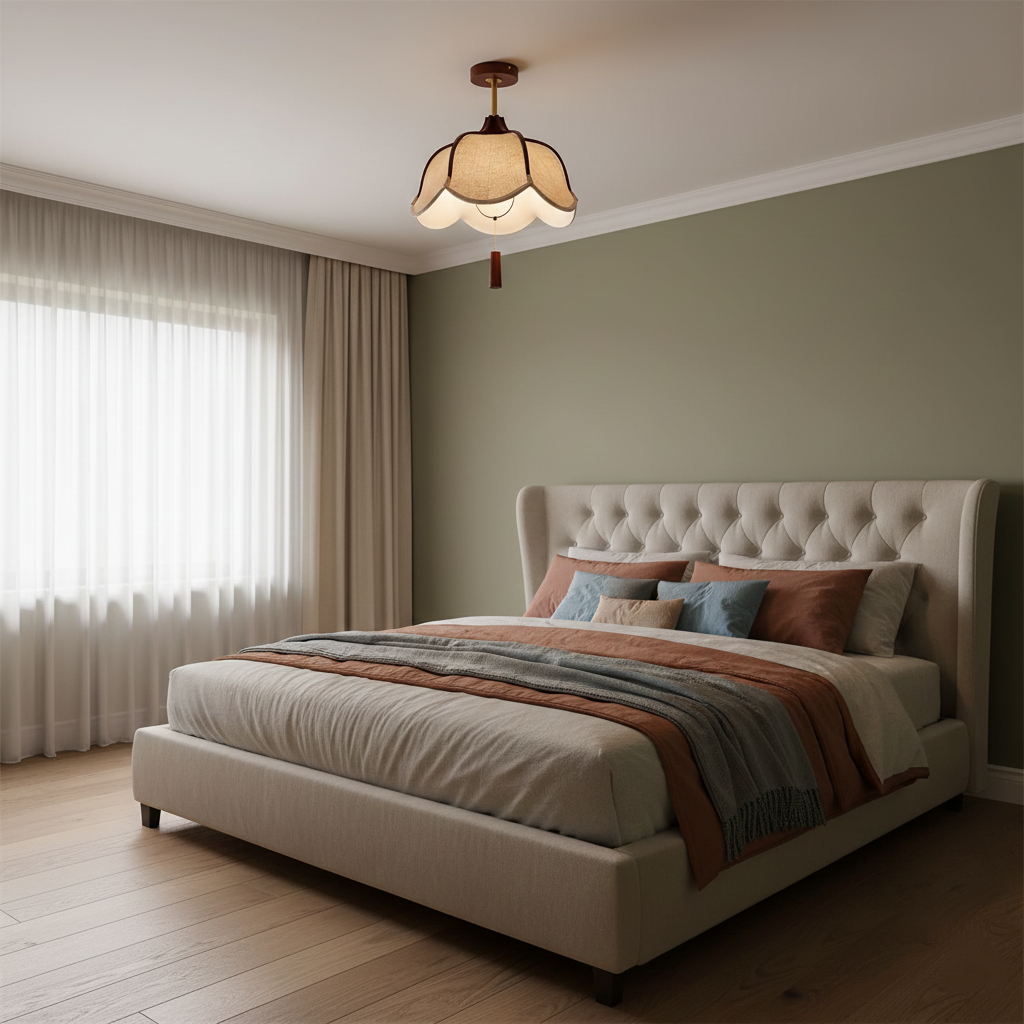 The Helia Ceiling Light – Inspired by the graceful shape of vintage petals, this light embodies both elegance and delicacy. The warm wooden frame supports a finely crafted fabric shade, casting a soft, nostalgic glow. A pendant drop at the center adds a unique touch of charm to the design. Helia is like a meticulously crafted work of art, leaving an indelible poetic beauty within the space.