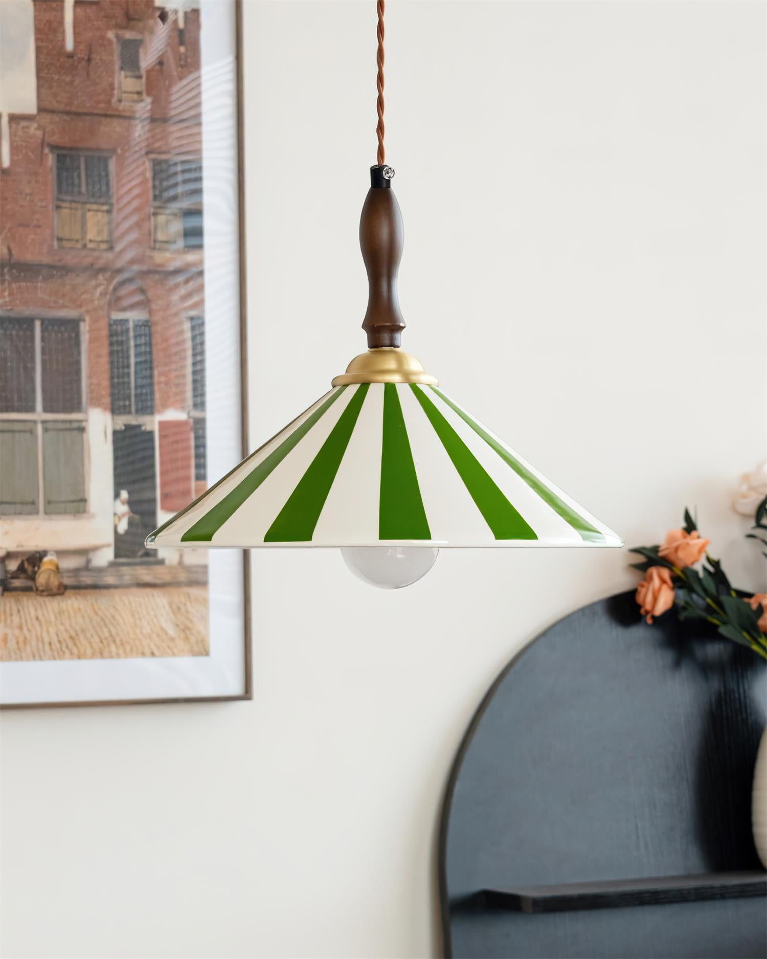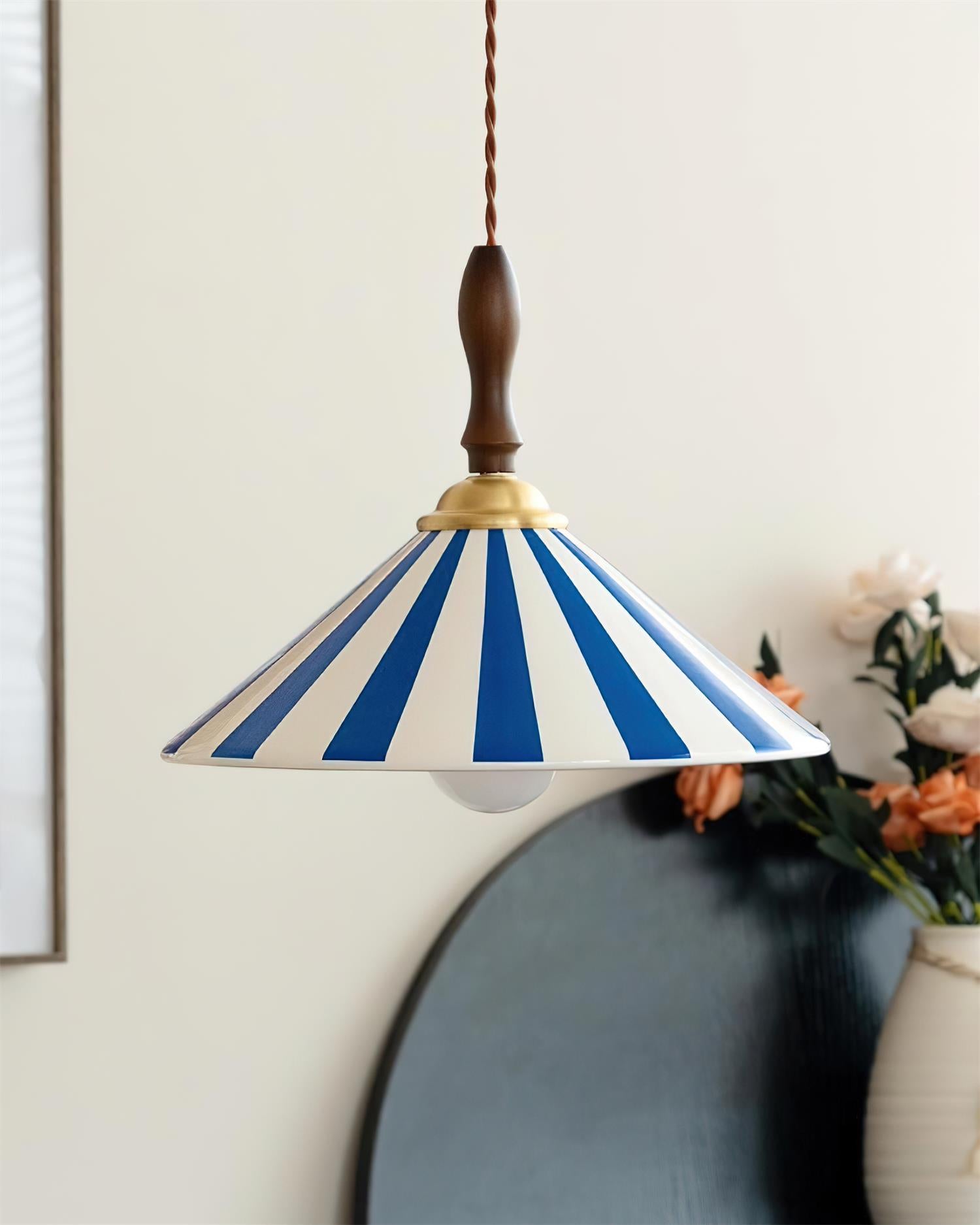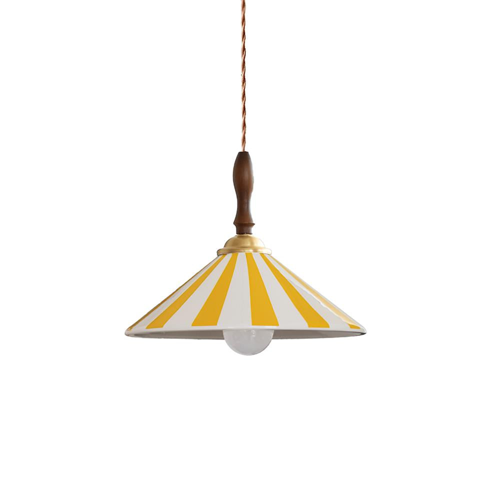 The Jollycap Pendant Lamp bursts with playful charm and nostalgic flair. Inspired by carnival tents and vintage candy stripes, this lamp infuses any space with vibrant personality. Its hand-painted ceramic shade, paired with a warm wooden top and brass accent, evokes a sense of artisanal craftsmanship and cheerful whimsy. Whether hung solo above a cozy breakfast nook or lined up in a row over a kitchen island, Jollycap brings a joyful pop of color and a touch of the unexpected to modern interiors.