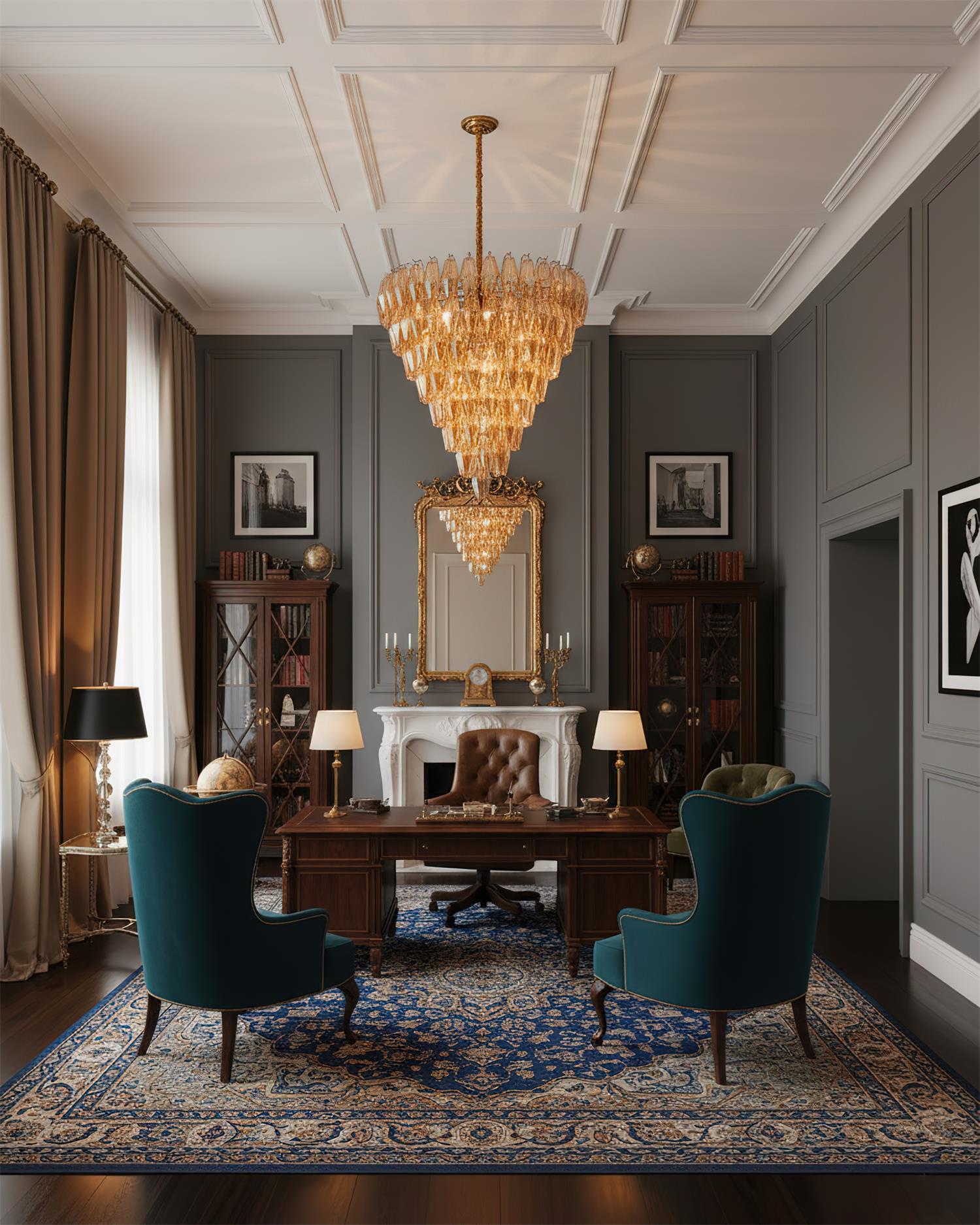 A radiant display of symmetry and shimmer, the Orinelle Chandelier transforms traditional elegance into modern brilliance. Each tier of handblown prism-shaped glass catches the light with effortless grace, forming a cascading silhouette that evokes architectural precision and sculptural artistry. Available in a curated palette—from clear crystalline tones to bold pink, amber, and verdant green—the Orinelle lends itself to both bold statements and refined subtlety.