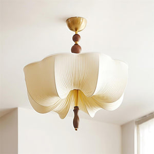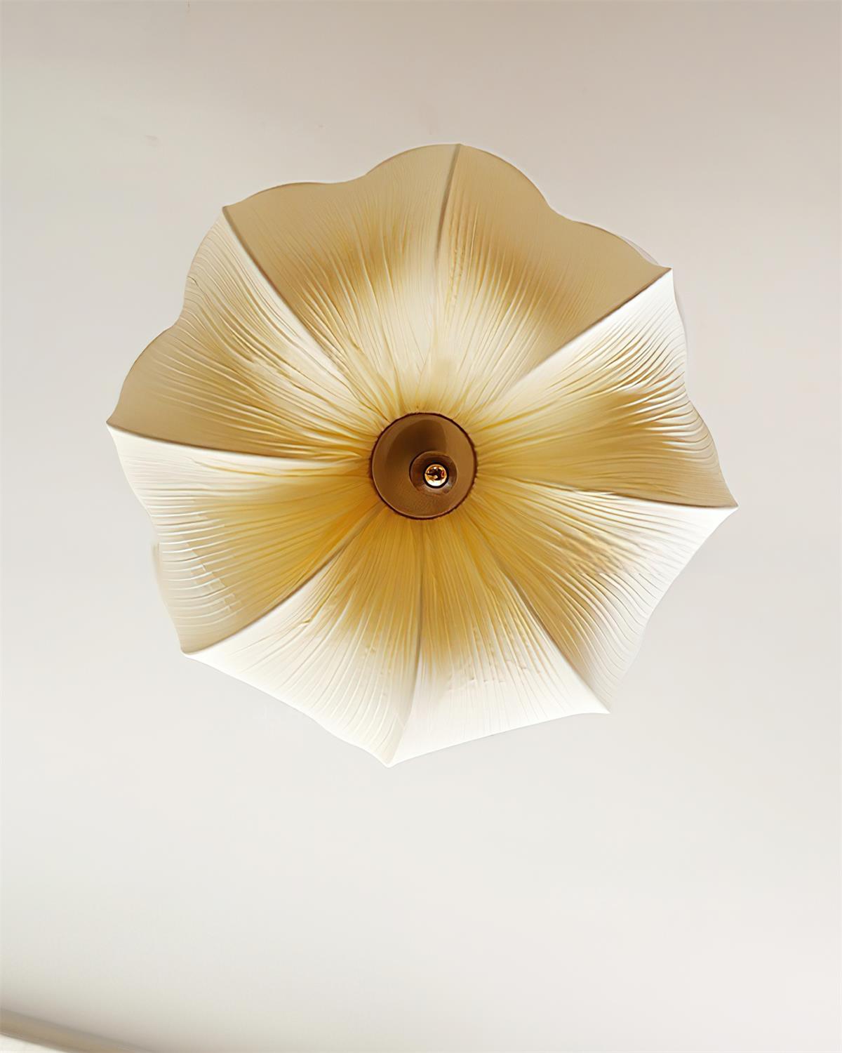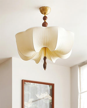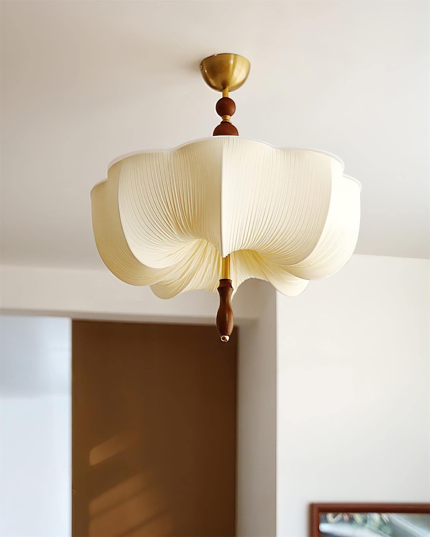 Inspired by the quiet elegance of a flower mid-bloom, the Petalia Ceiling Lamp brings a sense of soft movement to the ceiling. Its flowing silhouette—crafted from delicately pleated fabric—unfolds like petals in the morning light, while warm brass and smooth wood accents add a touch of refined contrast. The result is a light fixture that feels both grounded and ethereal, making it a poetic centerpiece for bedrooms, lounges, or reading nooks alike.