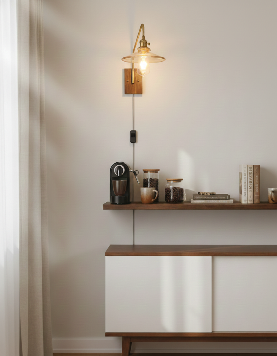 Transform any room in your home with the Retro Kelsey Plug In Wall Light. This eye-catching piece features a sleek walnut frame and glass, with a warm ambient glow that exudes sophistication and exclusivity. Perfect for bringing a hint of luxury to your bedroom, living room, or hallway.