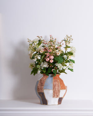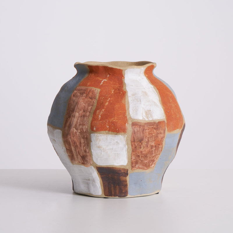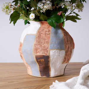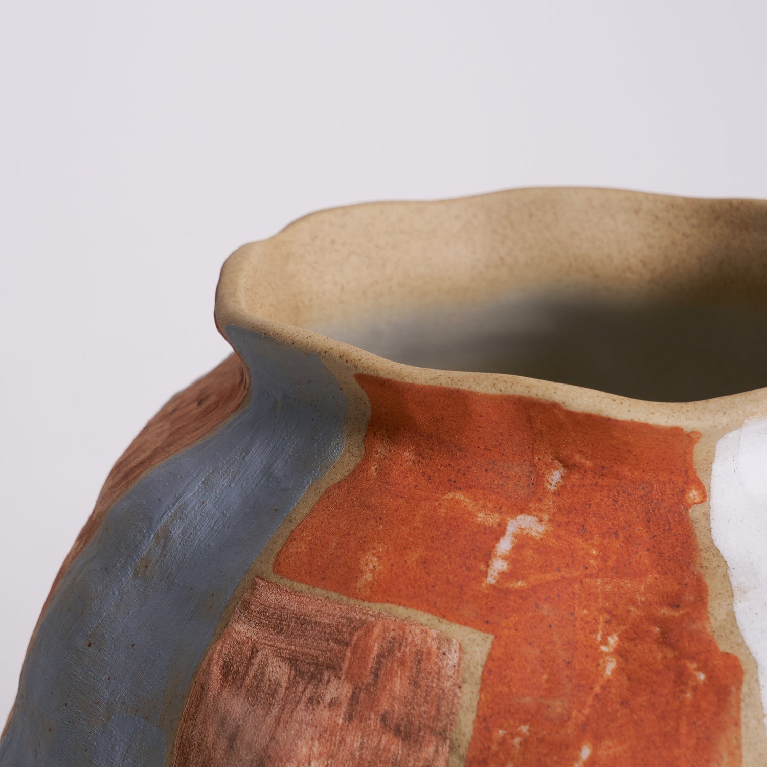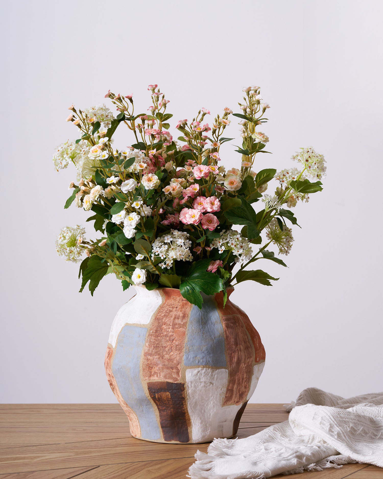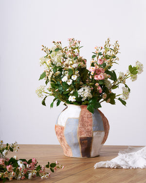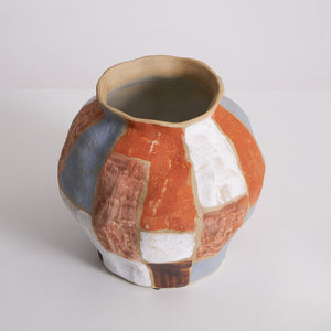 This vase features a modern geometric design, combining a unique polyhedral shape with irregular color blocks for a distinctive visual effect. Each brightly colored ceramic piece is carefully selected and handcrafted, not only giving this artwork unparalleled uniqueness but also ensuring perfection in every detail.